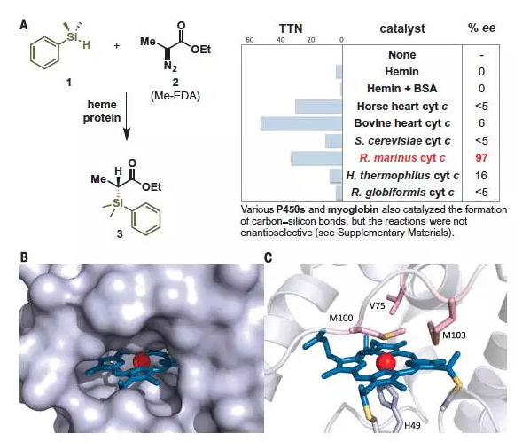 論文標題:Directed evolution of cytochrome c for carbon-silicon bond formation: Bringing silicon to life