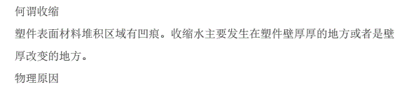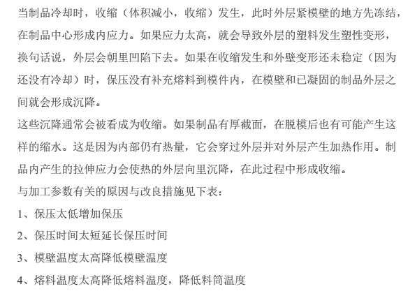 結晶性的塑料比非結晶性塑料收縮歷害,加工時要適當增加料量,或在塑料中加成換劑,以加快結晶,減少收縮凹陷。