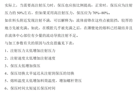 •主流道、分流道、澆口等的信道部分偏細,從而導致壓力傳遞不暢