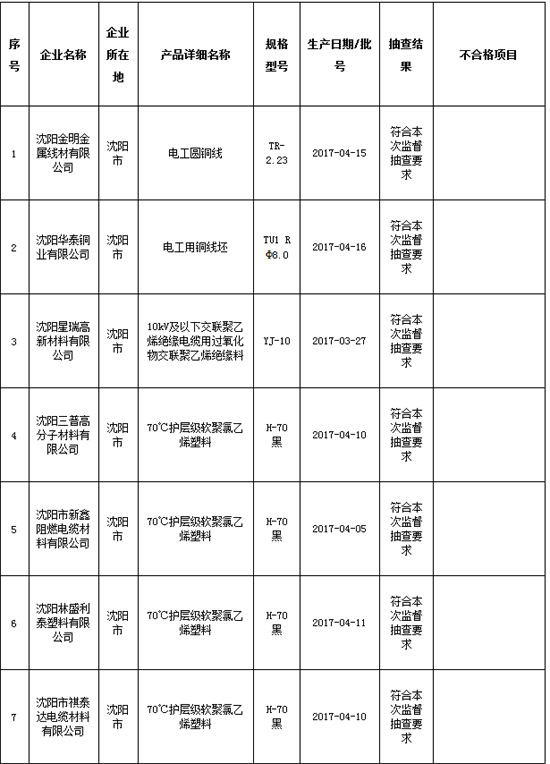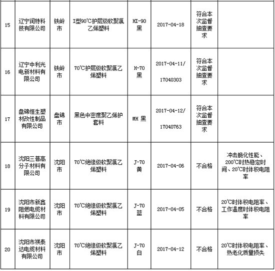 遼寧省質(zhì)監(jiān)局抽檢20批次電纜用資料產(chǎn)品?3批次不合格