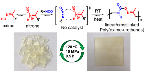 中科院有機化學(xué)研究室高分子物理與化驗室科技人員以六亞甲基二異氰酸酯(HDI)和多官能團異構(gòu)肟(Oxime)為原材料,在無金屬催化劑的柔和標(biāo)準(zhǔn)下,取得成功制取了肟類聚氨酯材料(POUs)。該縮聚反應(yīng)具備很效率高的突顯優(yōu)勢,在30oC的二氯甲烷中反映3鐘頭,轉(zhuǎn)換率達(dá)到99%;所制取的POUs與基本PUs物理性能非常。進(jìn)一步研究發(fā)現(xiàn),肟氨酯鍵具備熱可逆性,POUs主要表現(xiàn)出出色的熱自恢復(fù)和可回收特性,恢復(fù)高效率可達(dá)到90%。這一根據(jù)肟氨酯鍵動態(tài)特點的科研成果,促使POUs可回收復(fù)用變成了很有可能。