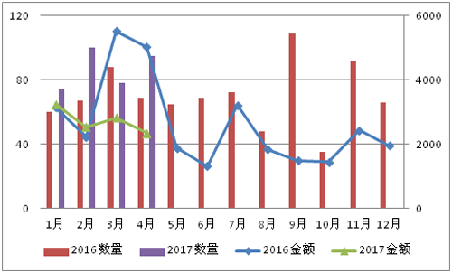 數(shù)據(jù)圖表1 2017年1-4月中國擠出機進口分月度總結(jié)統(tǒng)計分析