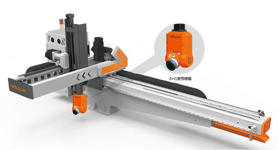 特性:胳膊采用碳纖維制做,重量較輕、剛度好;終端設備A C采用平方根交流伺服電機配用精細諧波減速機,根據格里森螺旋式傘齒傳動系統,可完成五軸三連動,高安裝,高柔性,高精度。