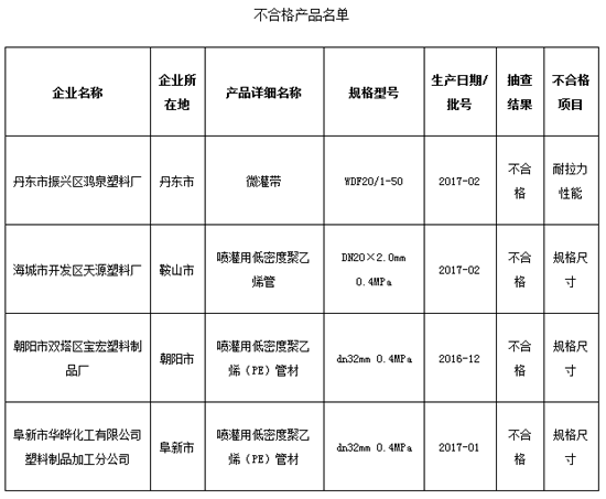 遼寧省質監局抽檢40批次農用塑料管材?4批次不合格