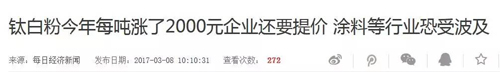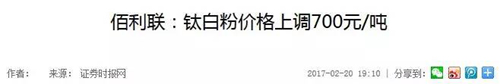 大伙兒是否有被這種今日頭條霸屏呢。鈦白粉的價錢節節攀升,亞洲地區大佬佰利聯股票價格也隨著增漲。