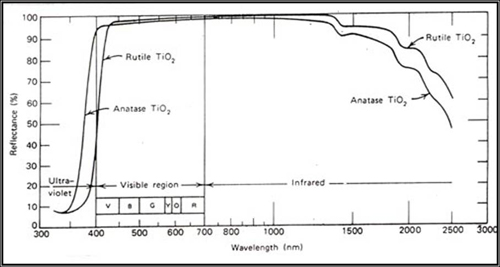 銳鈦型和金紅石型鈦白粉在紫外光,能見光,紅外感應地區的反射面