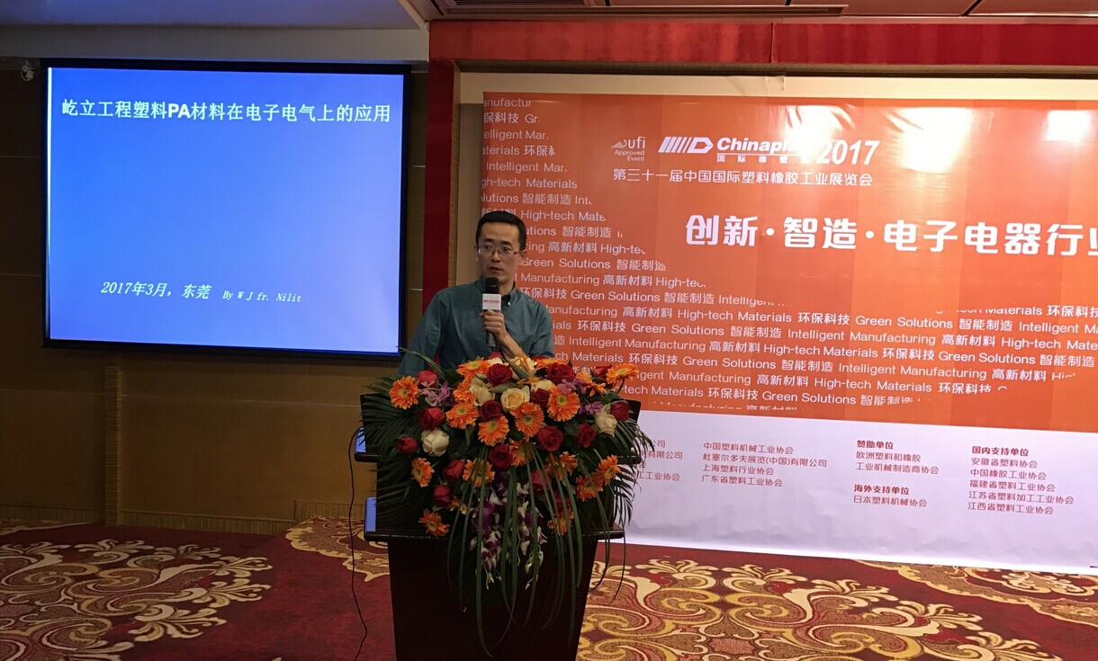 已有人閱讀此文 - -為考慮電子行業公司對材料和技術性的要求,也為協助公司追求完美更高品質的多元化及其更高效率的生產模式,3月29日,雅式展覽服務有限公司攜手并肩廣東省東莞市電子行業研究會,東莞展會國際大酒店舉行自主創新?智能制造?電子電氣領域塑料科技交流會,預告片了CHINAPLAS 2017 國際性橡塑展運用于電子產品的橡塑制品前沿科技、展覽會最新消息及多種多樣的當期主題活動等。交流會邀約好幾家材料和工業設備經銷商對于電子行業新技術應用干了演講,來源于萬得集團公司 、新盛電子器件 、絲麗雅電子器件 、金豐等公司的管理、產品研發、生產制造和購置責任人參加了大會,上中下游齊聚一堂,一同討論電子行業的新技術應用新發展趨勢,助推東莞市電子行業邁向時尚潮流、智能化系統、功能性。