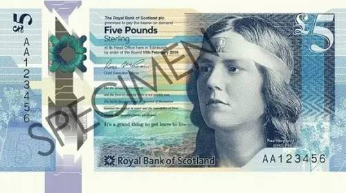 2015年3月23日,英國蘇格蘭克萊茲代爾金融機構公布發行美國第一批塑料鈔票。英國地域第一批發行的是5英鎊顏值的塑料鈔票,比美國別的地域提早了一年。