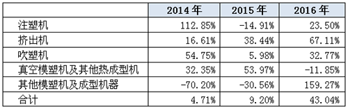 表2 2014-2016年中國塑機出口印度額度環比增長率