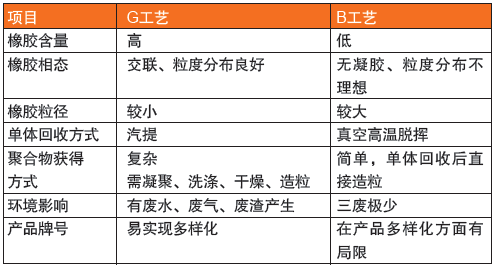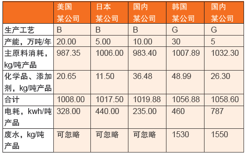下邊對B工藝和G工藝開展原料耗費和耗能較為,前面一種也是低的,見表2。