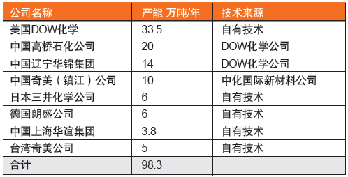 表4 全球生產制造持續本體ABS關鍵企業一覽(2011年)