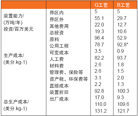 表1 G工藝和B工藝安全工程較為(2012年水準)