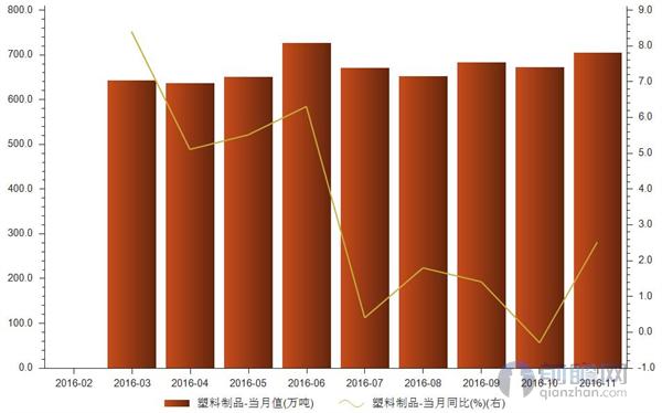 已有人閱讀此文 - -據(jù)前瞻數(shù)據(jù)庫(kù)數(shù)據(jù)信息顯示信息,2016年11月在我國(guó)塑料制品產(chǎn)量704.8萬(wàn)噸,環(huán)比增漲2.5%。