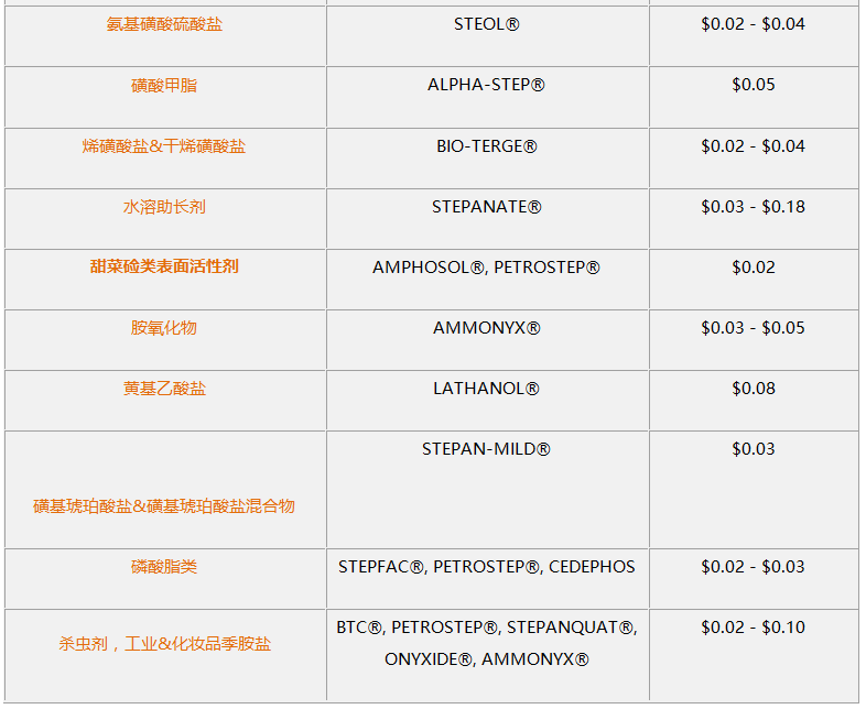 斯泰潘宣布自2017年1月15日起表面活性劑將漲價(jià)