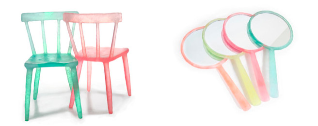 近期,她的灼光系列產(chǎn)品(Glow Collection)在本年度《建筑文摘》設(shè)計(jì)方案展(Architectural Digest Design Show)上初次現(xiàn)身。這一系列產(chǎn)品由一系列用收購 塑料制成的怪異的馬卡龍色桌椅、餐桌、大花瓶和鏡子所構(gòu)成。