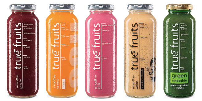 True Fruits 公司的多元化減肥奶昔包裝瓶蓋能夠卸下來,用食用鹽噴灑器或荼葉過濾裝置配件取代它的。