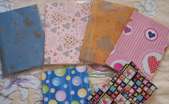 家長及學員購買書皮時,可觀查書皮原材料,要選擇光滑、整潔、清晰度高、沒有臭味的書皮;另外,家長能夠與小孩一起,用包裝紙、銅板紙等紙質材料自做書皮,那樣既環境保護又安全性,還能從這當中得到動手能力的快樂。