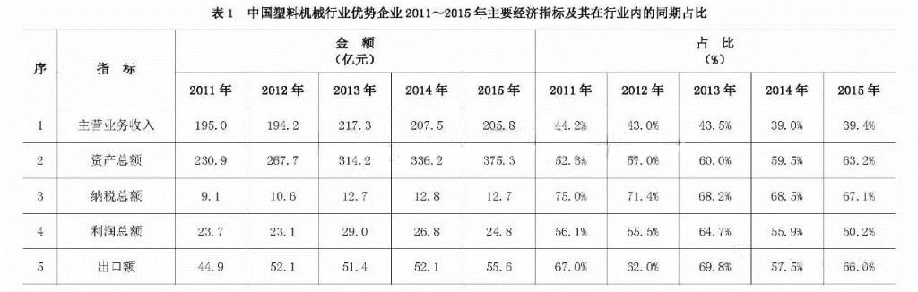 依據(jù)2016中國(guó)塑料機(jī)械設(shè)備行業(yè)優(yōu)點(diǎn)企業(yè)2015年的數(shù)據(jù)統(tǒng)計(jì),34家入選企業(yè)其工業(yè)產(chǎn)值和工業(yè)生產(chǎn)市場(chǎng)銷售年產(chǎn)值較2014年當(dāng)期各自降低9.4%和10.3%,主要經(jīng)營(yíng)的業(yè)務(wù)收益和資產(chǎn)總額環(huán)比各自降低0.8%和7.6%。主要經(jīng)營(yíng)的業(yè)務(wù)收入利潤(rùn)率為12.1%,高過(guò)行業(yè)9.5%的平均;負(fù)債率為40%,小于行業(yè)45%的平均。其關(guān)鍵經(jīng)濟(jì)數(shù)據(jù)占行業(yè)當(dāng)期規(guī)模以上企業(yè)企業(yè)總產(chǎn)量的占比各自為:主要經(jīng)營(yíng)的業(yè)務(wù)收益占39%、總資產(chǎn)占63%、納稅總額占67%、資產(chǎn)總額占50%、出口值占66%,債務(wù)占57%。