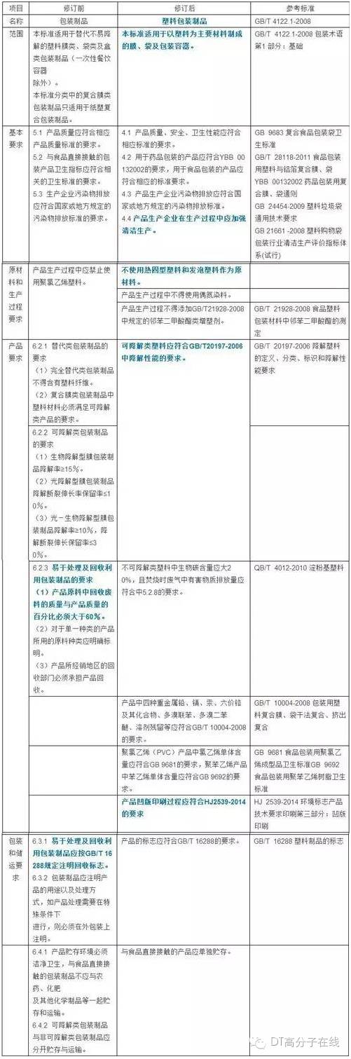 新版本規范中針對產品規定一部分的要求中,刪除了“便于解決及回收再利用塑料包裝制品的規定: