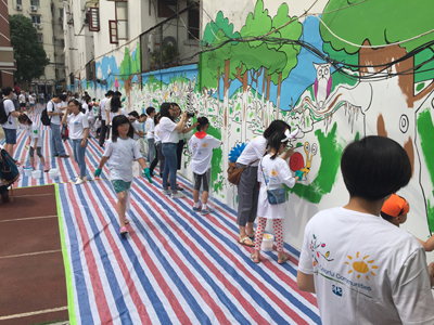 在PPG的方案策劃和機構下,PPG的職工以及兒女和愚園路第一中小學的學員們接著一起在涂刷一新的校園內報名參加了互動小游戲活動,一同慶賀國際兒童節。
