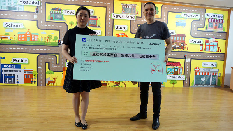 于5月31日在鎮(zhèn)江市學(xué)府路中小學(xué)舉行的捐贈(zèng)儀式是HOPES新項(xiàng)目2020年的第一次重特大主題活動(dòng)??迫R恩共向校領(lǐng)導(dǎo)捐助了40臺(tái)電腦上、8件傳統(tǒng)樂器和2臺(tái)立式飲水機(jī)。除此之外,科萊恩大中華地區(qū)首席總裁嚴(yán)凱鵬(Jan Kreibaum)還專業(yè)設(shè)立了朝向不一樣水準(zhǔn)學(xué)生英語專題講座。