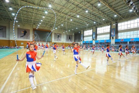 寧東第三小學學生用沙特基礎工業生產企業贈予的圓竹繩演出“繩彩飛舞”綜藝節目