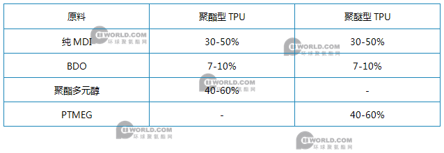 圖:TPU常用原料占有率數據來源:率捷咨詢-寰球聚氨酯網