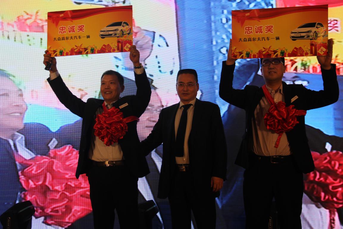 許多人注目的嘉獎(jiǎng)階段,節(jié)目主持人誦讀了2015年度得到本年度出色員工獎(jiǎng)的員工名冊(cè),并由公司高管為其授予了資格證書(shū),以茲鼓勵(lì)。當(dāng)場(chǎng)更向喜獲“忠實(shí)獎(jiǎng)”的兩位老員工獎(jiǎng)賞了兩部“大眾高爾夫”轎車(chē),紅運(yùn)全體人員員工為得獎(jiǎng)?wù)叻钌狭俗钫嫘膶?shí)意的慶賀和最掌聲雷動(dòng)。