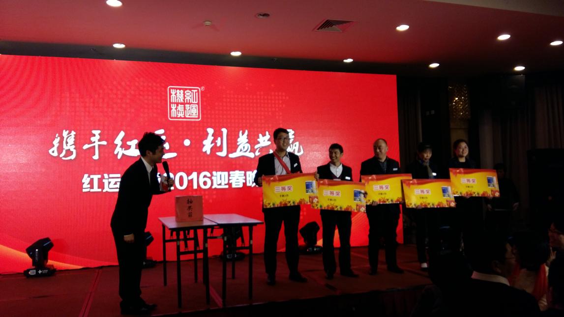 接著,呂總數(shù)其他領(lǐng)導(dǎo)干部上臺(tái)共飲佳釀,也從而打開(kāi)了“攜手紅運(yùn)、權(quán)益雙贏”主題企業(yè)年會(huì)演出節(jié)目的序幕。