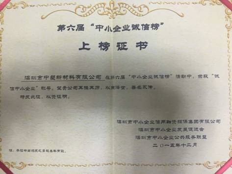 2015年12月10日,第六屆“中小型企業誠信榜”頒獎典禮授信額度慶典在深圳市深圳前海經濟特區館國際會議中心隆重召開。