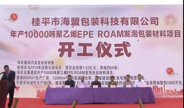 已有人閱讀此文 - -11月18日,桂平市海盟包裝科技有限公司年產(chǎn)1萬噸聚乙烯EPE ROAM發(fā)泡包裝材料項目在桂平市長安工業(yè)區(qū)開工。貴港市政協(xié)副主席林武、黃漢洋,桂平市政協(xié)副主席古雄蓮及相關部門、業(yè)主單位、施工單位負責人參加開工儀式。