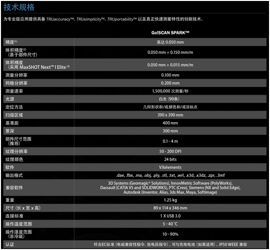 兼容軟件Geomagic (Studio and Qualify);Rapidform (XOR andXOV);InnovMetric Software (PolyWorks);Dassault (CATIA V5and Solidworks);PTC (Pro/ENGINEER);Siemens (UG and Solid Edge);Autodesk (Inventor,Alias, 3ds Max, Maya,Softimage)。詳細介紹請參考搜料網soliao.com。
