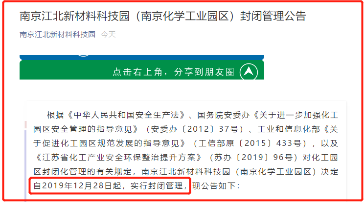 12月28日,南京江北新材料科技園官方公眾號一則封閉管理的公告,引發(fā)熱議。