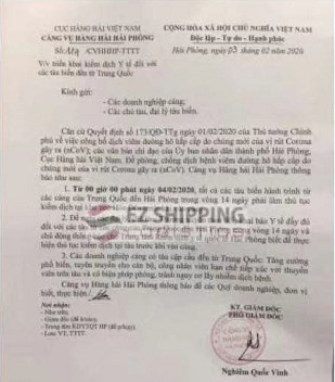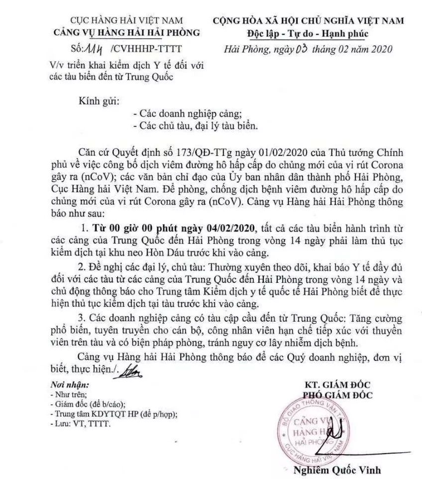 越南衛生部發布公告,在海防港口,將對來自中國等新型冠狀病毒高發國家的船舶,采取一系列管控措施!以避免病毒通過船舶等形式輸入越南,船舶必須在特定的地方拋錨檢測隔離14天后才能靠港。 -