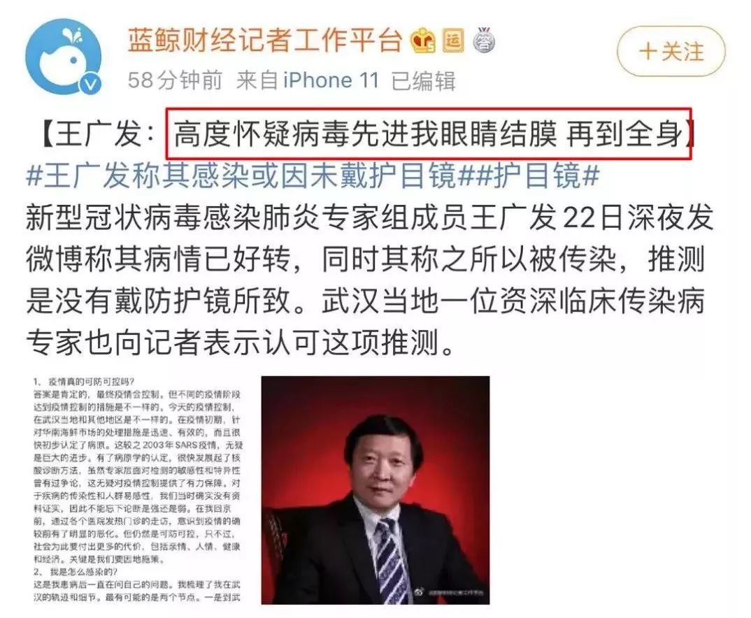 也就是說,近距離接觸時,患者或者疑似病人或者沒有癥狀的病毒攜帶者的口水(飛沫),可能會濺到醫護人員的眼珠子上。然后,他們可能就會被傳染。