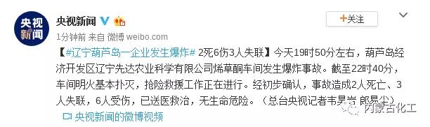 突發:遼寧省一家化工企業烯草酮發作爆炸,2死6傷, 3人失聯