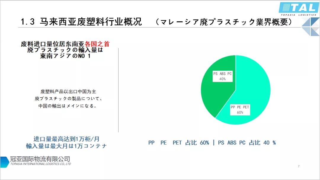 目前馬來西亞廢塑料進口量是東南亞最大的。據海關統計每月有10000個集裝箱進口。
