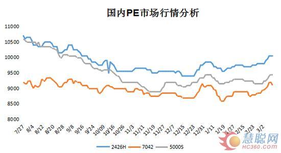 已有人閱讀此文 - -3月9日PE市場開始漲后企穩,局部走跌。隨著近期價格的日益走高,下游工廠抵觸情緒漸濃,來自需求方面的阻力不斷凸顯,從而導致成交難現轉機,貿易商炒作心態從亢奮逐漸向謹慎轉變。國內主流價格:LDPE:9950-10500元/噸,LLDPE:9250-10000元/噸,HDPE:拉絲料9600-9800元/噸。