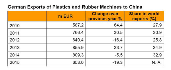 已有人閱讀此文 - -2015年受國內市場不振影響,德國對華出口的塑膠機械總金額大跌19%,至6.53億歐元。
