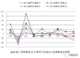 塑料造粒機雖然進口數量下降40%,但進口金額同比增長39%;出口數量和金額則分別同比下降54%、14%。