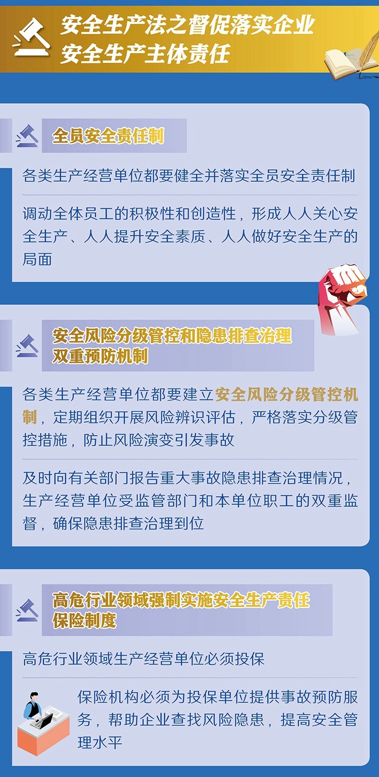 宋元明稱,修改后的安全生產(chǎn)法加大對(duì)違法行為的懲處力度。第一,罰款金額更高。這次修改普遍提高了對(duì)違法行為的罰款數(shù)額,就事故罰款方面,由現(xiàn)行法規(guī)定的20萬元至2000萬元,提高至30萬元至1億元;對(duì)單位主要負(fù)責(zé)人的事故罰款數(shù)額由年收入的30%至80%,提高至40%至100%。第二,處罰方式更嚴(yán)。比如,對(duì)生產(chǎn)經(jīng)營(yíng)單位未采取措施消除事故隱患的,由現(xiàn)行法規(guī)定的先責(zé)令整改,拒不整改再責(zé)令停產(chǎn)停業(yè)整頓并處罰款,修改為,違法行為一經(jīng)發(fā)現(xiàn)即責(zé)令整改并處罰款,拒不整改的,責(zé)令停產(chǎn)停業(yè)整頓,并可以按日連續(xù)計(jì)罰,拒不停產(chǎn)整頓的,提請(qǐng)地方人民政府予以關(guān)閉。第三,懲戒力度更大。加大對(duì)違法失信行為的聯(lián)合懲戒和公開力度,增加了加大執(zhí)法頻次、暫停項(xiàng)目審批、上調(diào)有關(guān)保險(xiǎn)費(fèi)率、行業(yè)或者職業(yè)禁入等聯(lián)合懲戒措施,通過“利劍高懸”,有效打擊震懾違法企業(yè),保障守法企業(yè)合法權(quán)益。