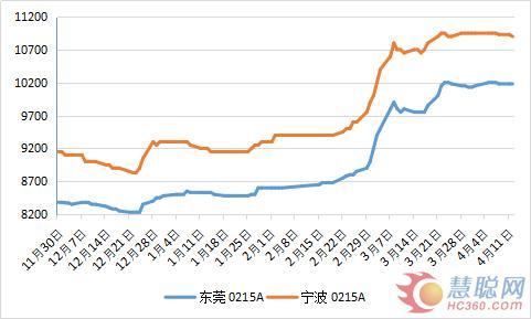 以國內ABS市場牌號為0215A的產品為例,從圖中可以看出,近期東莞、寧波市場該牌號產品較之前有小幅下調,多在100-300元/噸。其他產品報價也不樂觀,多種產品報價出現下滑。