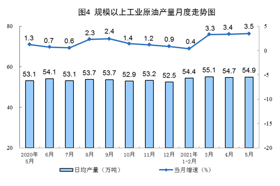 5月份原油生產穩定增長,天然氣生產有所回落