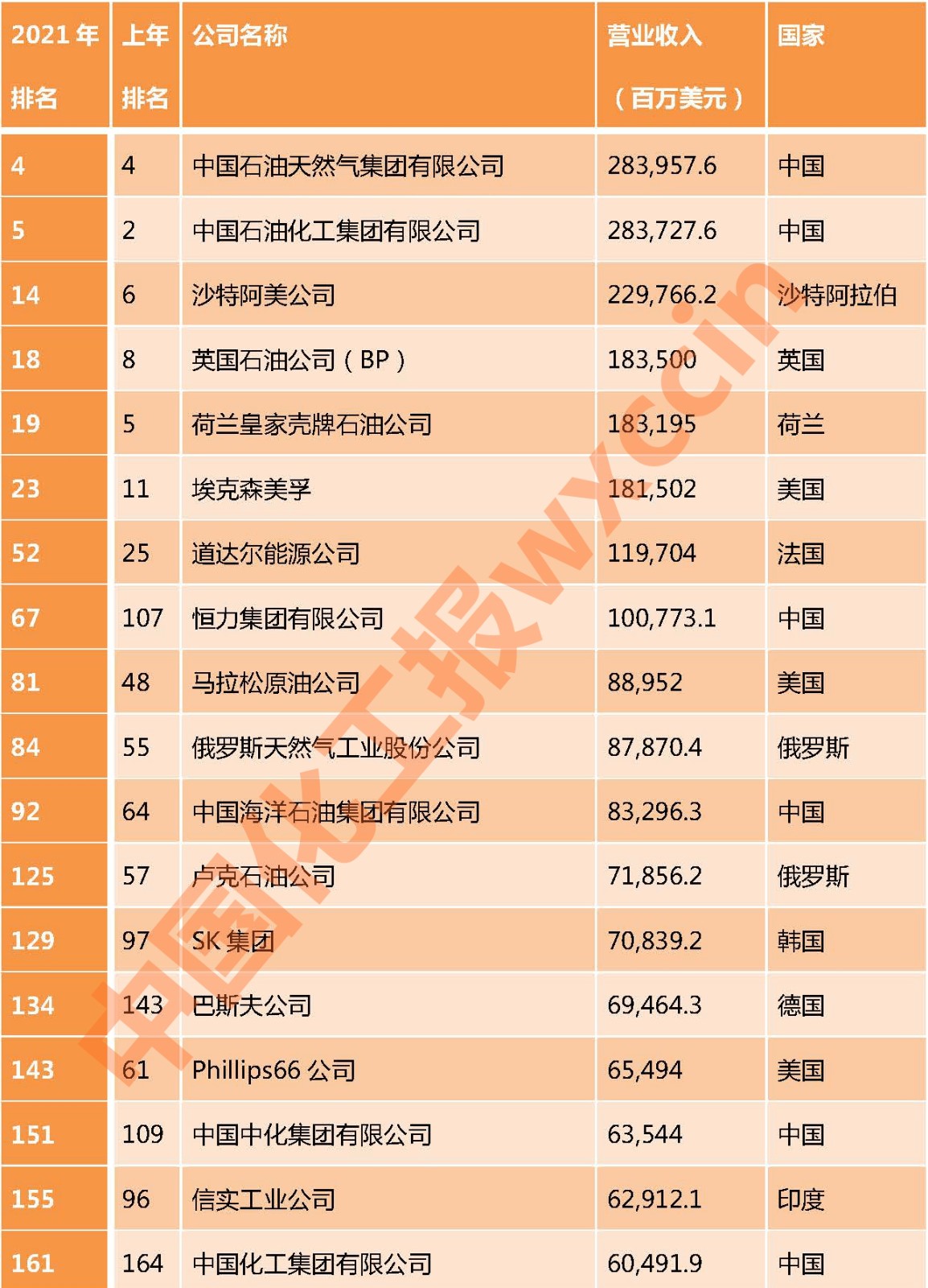 2021年《財(cái)富》世界500強(qiáng)石油和化工行業(yè)榜