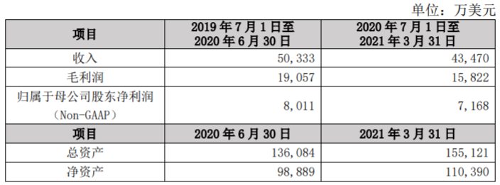 根據和利時公開披露的財務報表,和利時 2020 財政年度(2019 年 7 月 1 日 至 2020 年 6 月 30 日)、2021 財政年度的前九個月(2020 年 7 月 1 日至 2021 年 3 月 31 日)的主要財務數據如下: