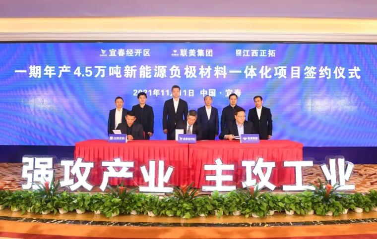 11月11日,總投資30億元、一期投資10億元的聯美集團年產4.5萬噸新能源負極材料一體化項目和投資20億元的時代永福500MW分布式屋頂光伏項目正式簽約落戶宜春經濟技術開發區。