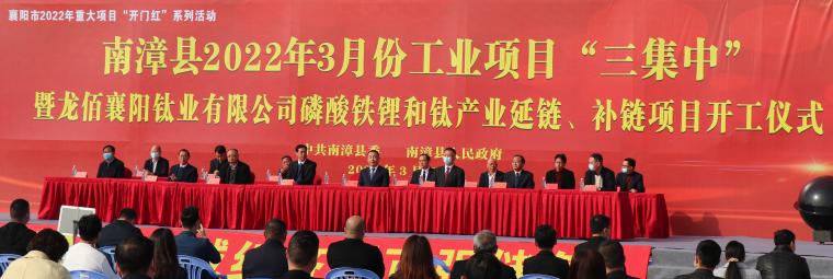 3月7日上午,湖北省南漳縣舉行2022年3月份工業項目“三集中”暨龍佰襄陽鈦業有限公司磷酸鐵鋰和鈦產業延鏈、補鏈項目開工儀式。此次活動集中簽約、開工、投產項目29個,合計投資總額66.89億元,奮力沖刺首季“開門紅”。