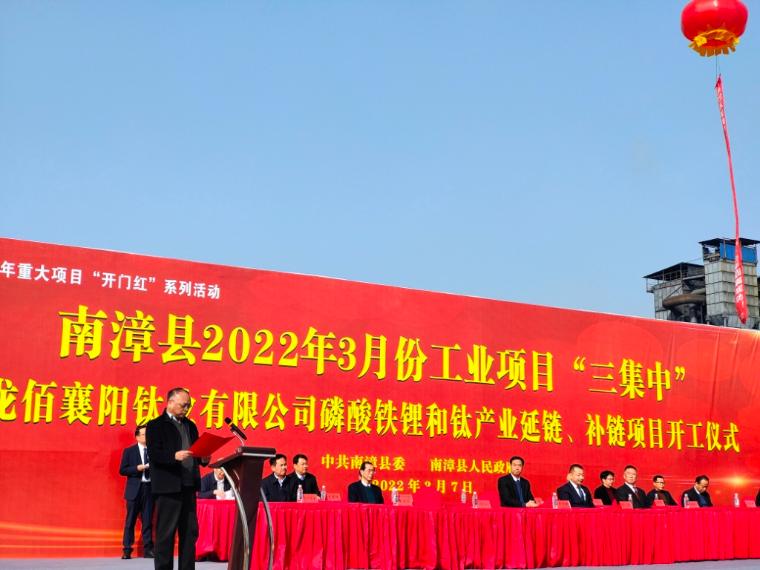 南漳縣委副書記、縣長陳棟在致辭中指出,此次舉行的3月份工業項目三集中暨龍佰襄陽鈦業磷酸鐵鋰和鈦產業延鏈、補鏈項目開工儀式,表明了縣委、縣政府奮力奪取一季度工業經濟“開門紅”的信心、決心,對促進我縣今年的工業發展具有重大意義。此舉必將對南漳縣優化產業結構,推動產業升級,構建產業生態,奪取“開門紅”、再續“新精彩”產生深遠影響,并提供強勁的項目支撐。