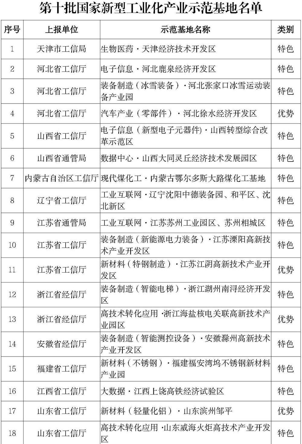 已有人閱讀此文 - -3月15日,工業和信息化部公布了第十批國家新型工業化產業示范基地名單,天津經濟技術開發區等33個產業基地入選。