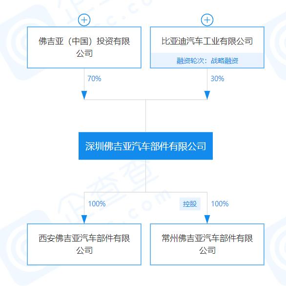 企查查股權穿透顯示,該公司為深圳佛吉亞汽車部件有限公司全資控股,后者由佛吉亞、比亞迪共同持股,股權占比70%:30%。